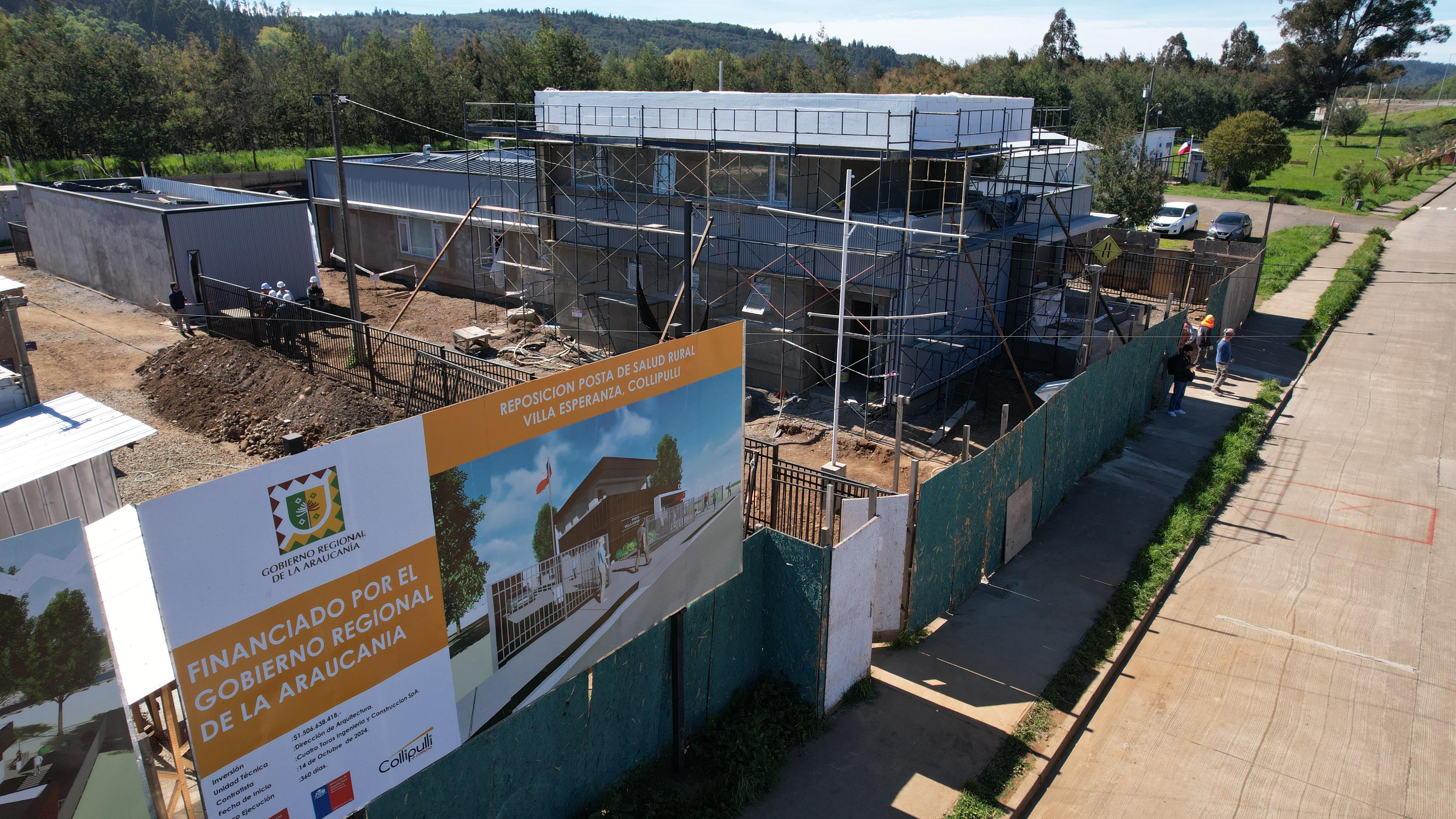 Con un avance cercano al 46% y con una inversión del GORE Araucanía por más de $1.500 millones, la futura posta de salud rural de Villa Esperanza permitirá brindar una atención digna y de calidad a las familias de los sectores rurales de Collipulli.